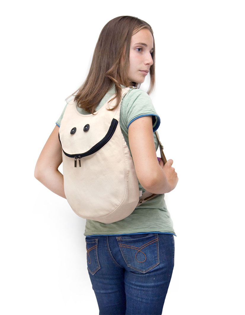 The idea was to create simple forms that call to a positive emotional response. Backpack that could be used as a mood status or mood changer for those who got stuck at the dark side.