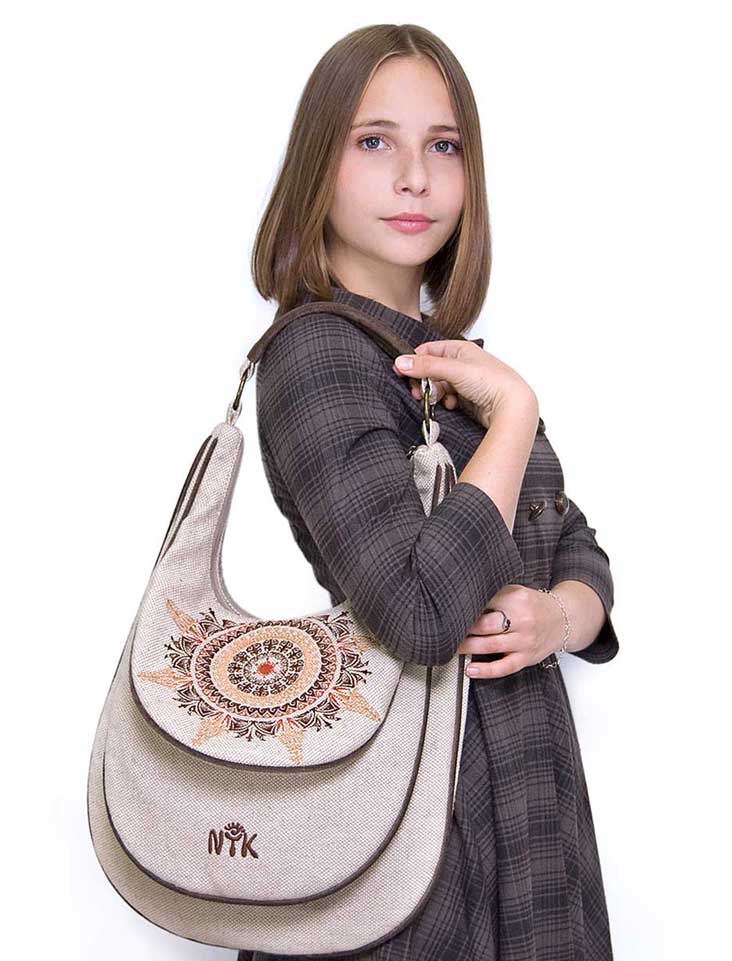 Simple, with light ethnic touch. Reused paper and single color water ink.